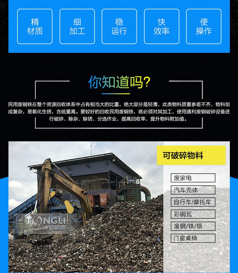 廢鋼破碎機(jī)是結(jié)合市場(chǎng)需求而成的產(chǎn)品。主要針對(duì)量廢棄金屬的再生利用,進(jìn)行預(yù)破碎處理,并清理表面的油漆和污垢。該機(jī)產(chǎn)能每小時(shí)3T左右。