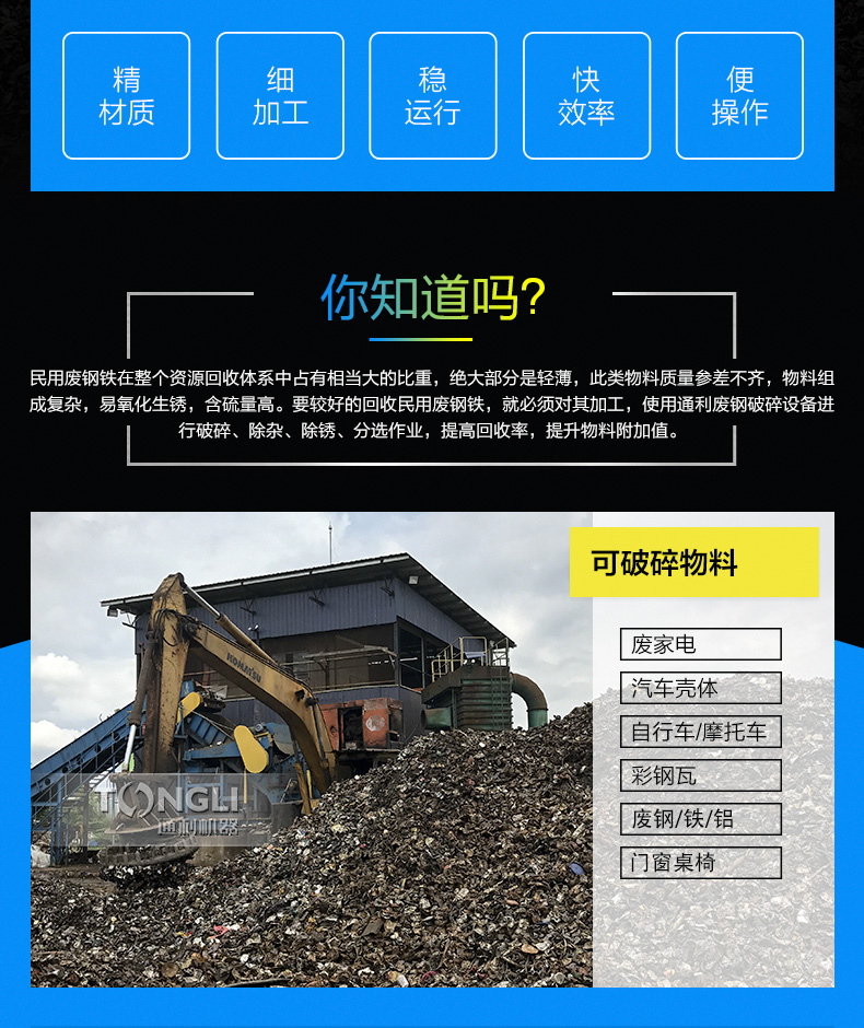 廢鋼破碎機(jī)是結(jié)合市場需求而成的產(chǎn)品。主要針對量廢棄金屬的再生利用,進(jìn)行預(yù)破碎處理,并清理表面的油漆和污垢,該機(jī)產(chǎn)能每小時(shí)6-8T左右。
