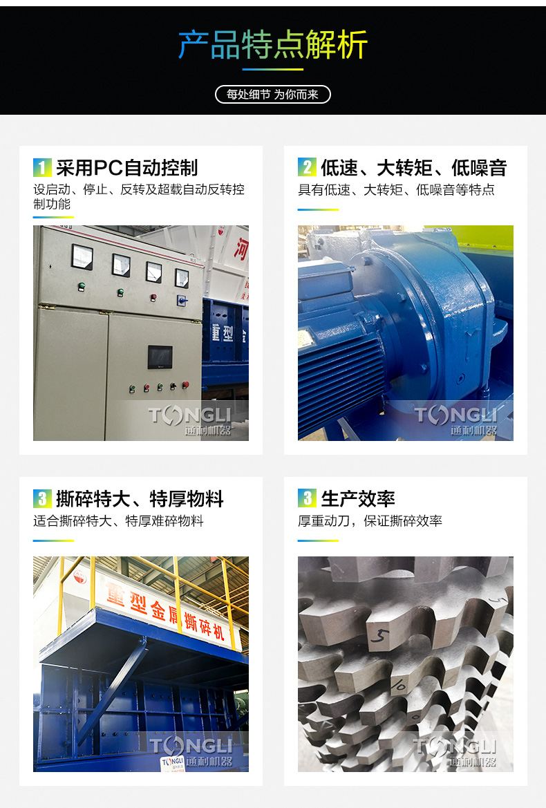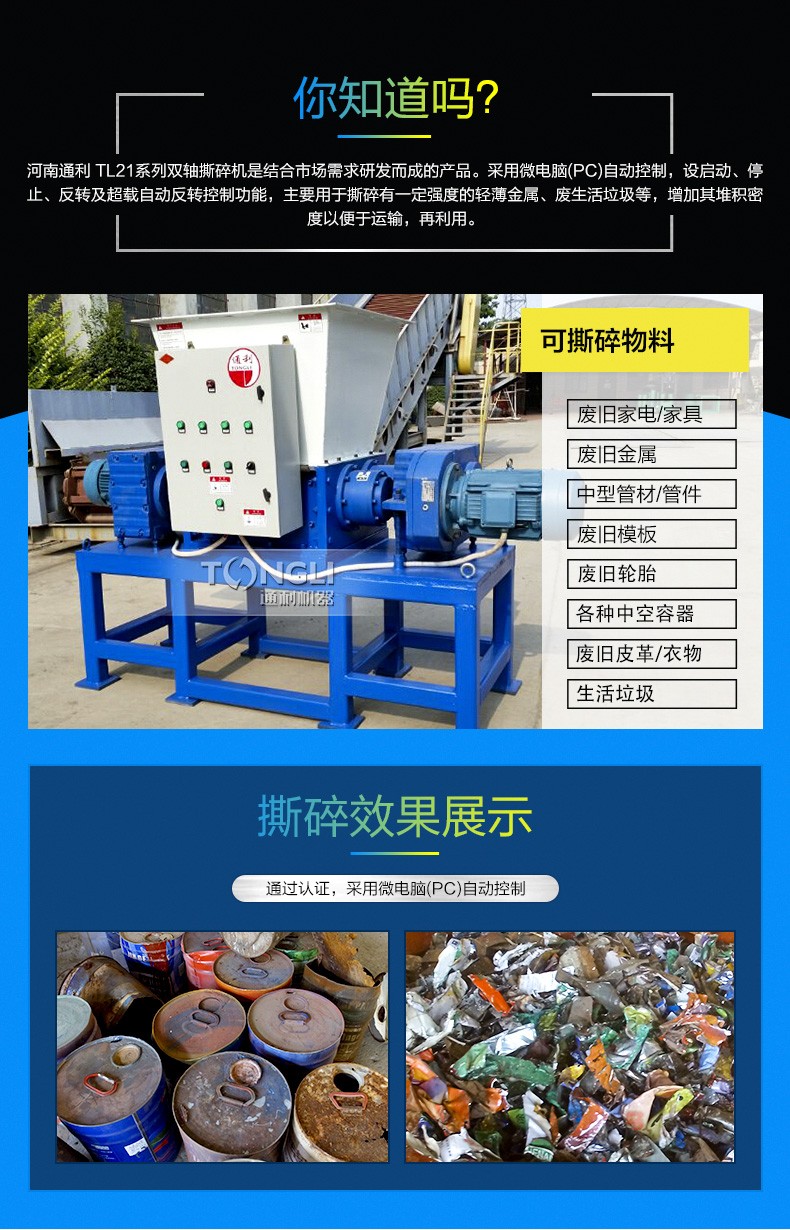 雙軸撕碎機(jī)是結(jié)合市場(chǎng)需求而成的產(chǎn)品。采用微電腦(PC)自動(dòng)控制,設(shè)啟動(dòng)、停止、反轉(zhuǎn)及載自動(dòng)反轉(zhuǎn)控制功能,主要用于撕碎有一定強(qiáng)度的輕薄金屬、廢生活垃圾等,增加其堆積密度以便于運(yùn)輸,再利用。