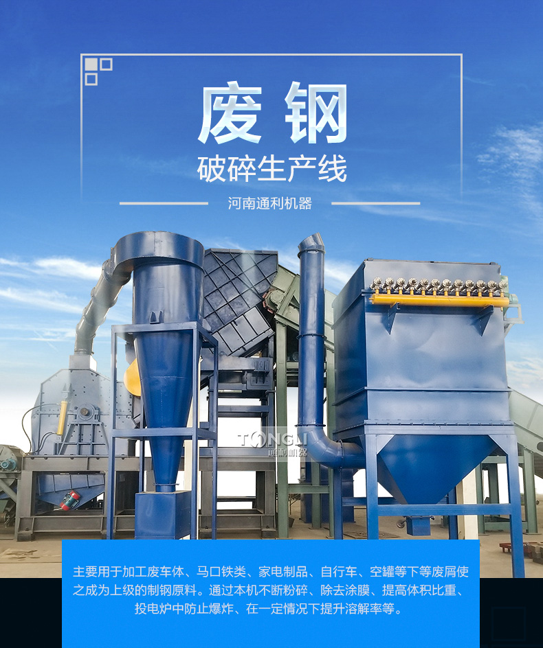 如果您在生活中稍微留意一下,不難發(fā)現(xiàn)廢鋼破碎已經(jīng)成為熱門行業(yè),為什么這樣講呢?因?yàn)槟壳敖饘儋Y源日益減少,甚至有的已經(jīng)出現(xiàn)匱乏,那么需要找到合適有效的方法來解決這一問題,所以,廢舊金屬回收再利用顯然已經(jīng)成為一捷徑,而通利機(jī)械廢鋼破碎生產(chǎn)線恰恰引領(lǐng)廢鋼破碎行業(yè)潮流,廢鋼破碎生產(chǎn)線是繼提倡生活之后應(yīng)允而生的新型機(jī)械。
