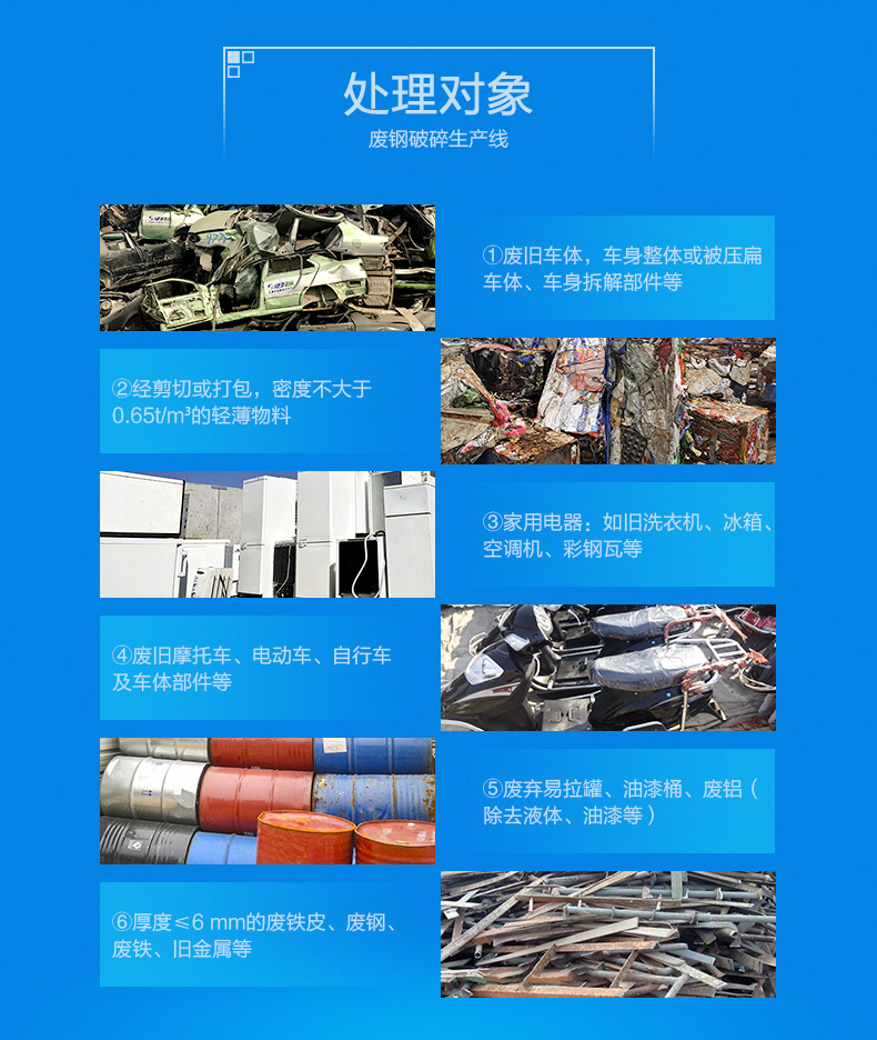 鏈板式上料輸送機(jī)、液壓控制進(jìn)料溜槽 、廢鋼破碎機(jī)主機(jī) 、振動(dòng)出料機(jī) 、排料皮帶式輸送機(jī) 、上置式磁滾筒 、非磁性出料皮帶輸送機(jī) 、金屬料出料皮帶式輸送機(jī)、回轉(zhuǎn)式堆料皮帶式輸送機(jī)
